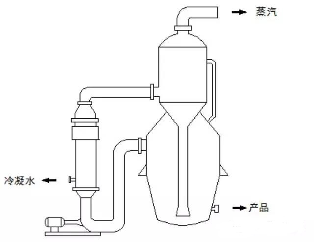 OSLO蒸發結晶器由OSLO蒸發器、換熱器和強制循環泵組成。物料在換熱器的換熱管內被換熱管外的蒸汽加熱溫度升高。在循環泵作用下物料上升到OSLO蒸發結晶器中,在OSLO蒸發結晶器內由于物料靜壓下降使物料發生蒸發。